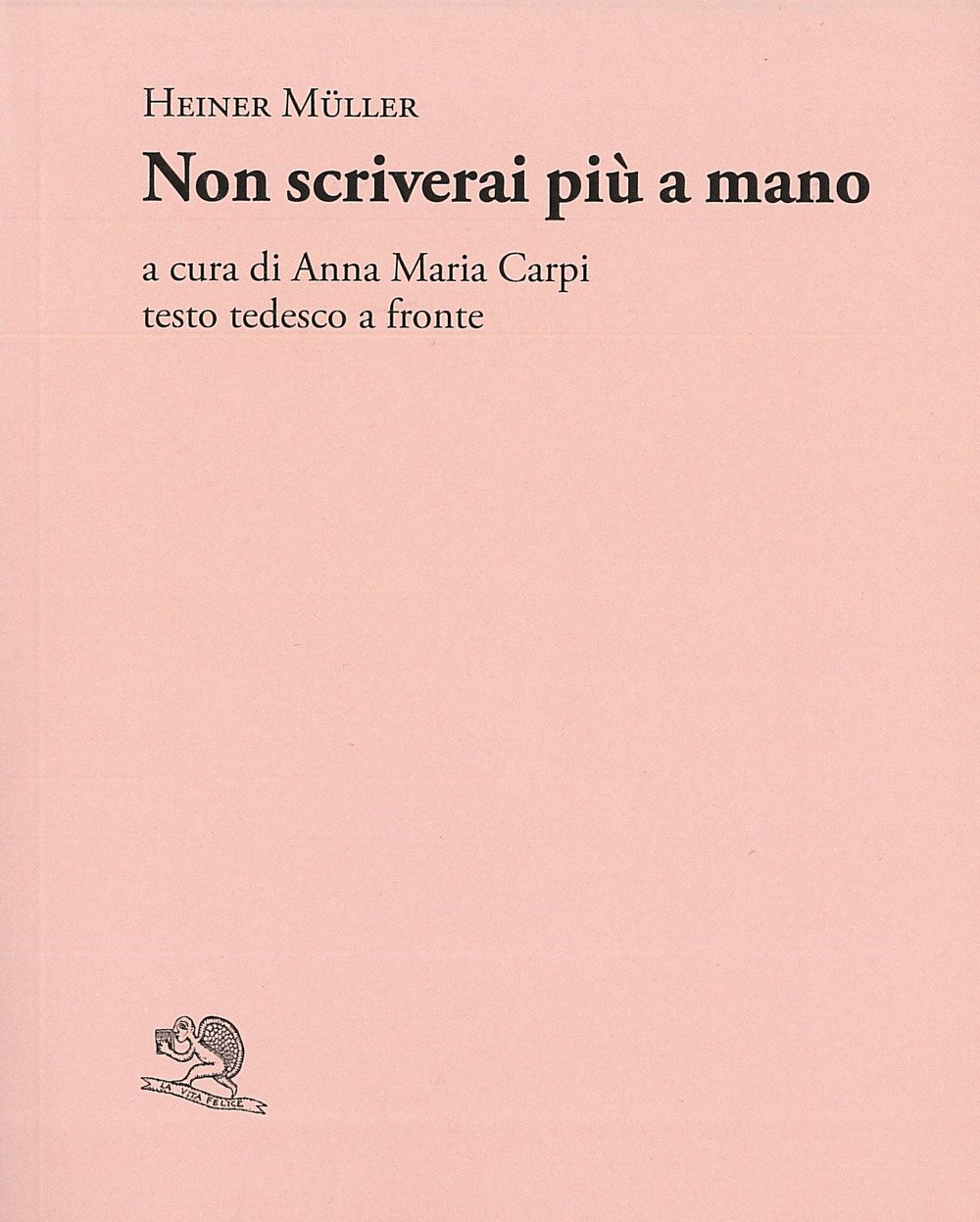 Il volume di versi di Heiner Müller che riproponiamo nella collana Adamàs, Non scriverai più a mano, resta l’unica raccolta pubblicata in Italia, grazie alla traduzione di Anna Maria Carpi, del grande drammaturgo tedesco. I testi che compongono l’antologia sono stati scelti da Durs Grünbein. In questo volume la storia della Germania si confonde con la storia occidentale e il destino degli uomini comuni si intreccia con il destino delle figure di grandi poeti della nostra tradizione: Orazio, Shakespeare, Lautréamont, l’amato Brecht. Le loro voci, che compaiono come assoli o fiati di fantasmi nelle diverse composizioni del volume, ci suggeriscono qualcosa sul ruolo del poeta nell’Europa centrale, perché sono «rovine i poemi, come i corpi, a lungo amati e ora fuori uso, sul cammino della stirpe non infinita che ha sempre bisogno di qualcosa fra i versi un lamento». Come nel testo teatrale Anatomia Tito Fall of Rome. Un commento shakespeariano, Heiner Müller riesce quindi a piegare la condizione postmoderna a uno sguardo proprio, fatto di lirismo critico ma tragico e, proprio per questo, tanto più etico. Anche l’evocazione delle due Germanie, ancora divise, è la figurazione di un destino di contrapposizioni e di scontro al quale bisogna dare un senso diverso e nuovo: «Traverso il confine cresce e cresce l’erba. L’erba va strappata non smette di crescere traverso il confine». (Vincenzo Frungillo)