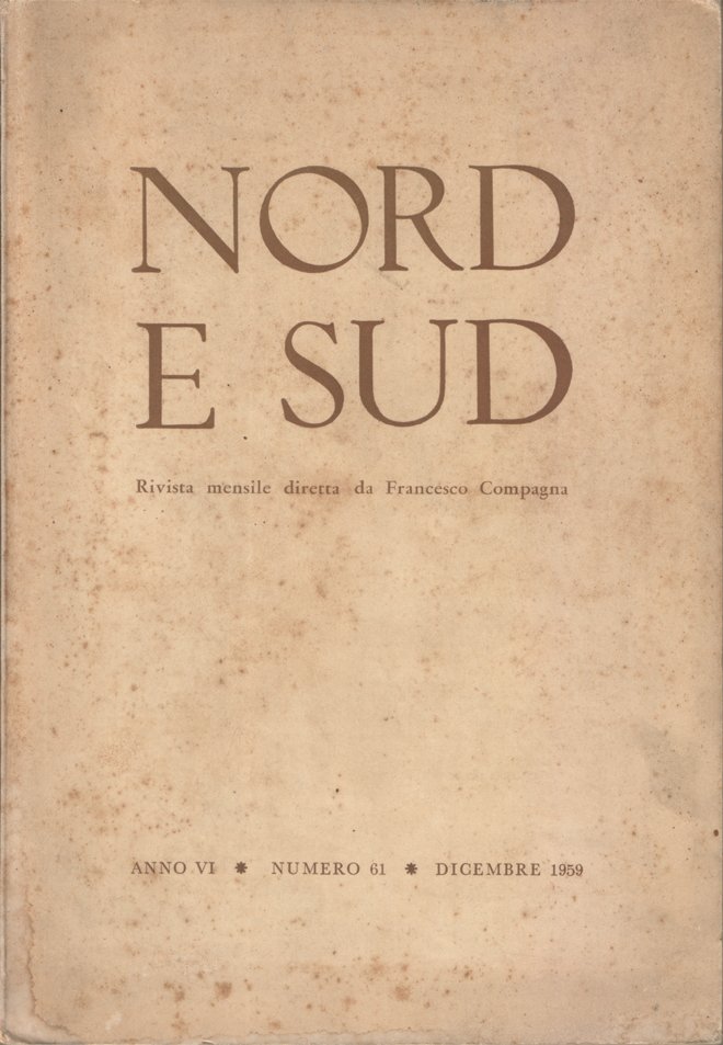 Nord e Sud. Rivista mensile diretta da Francesco Compagna. Anno VI, Numero 61, Dicembre 1959