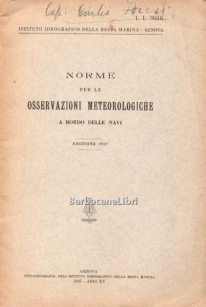 Generalità sui bollettini meteorici radiotelegrafici delle navi e delle stazioni terrestri, forma simbolica internazionale dei bollettini meteorici delle navi, registrazione delle osservazioni, fogli meteorologici, direzione e velocità del vento, definizione e descrizione delle forme delle nubi, moto delle nubi, indicazioni per la misura della pressione e per l'uso del barometro.
