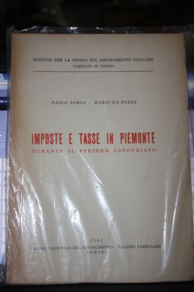 NORSA PAOLO - DA POZZO MARIO, IMPOSTE E TASSE IN PIEMONTE DURANTE IL PERIODO CAVOURIANO, A, MUSEO NAZIONALE DEL RISORGIMENTO, 1961, , CODICE 914, , In 8, cm. 25 x 18, pp. 157 + (3). Brossura editoriale. Pubblicazione predisposta dal Comitato torinese Museo Nazionale del Risorgimento per il centenario del 1861. Bruniture