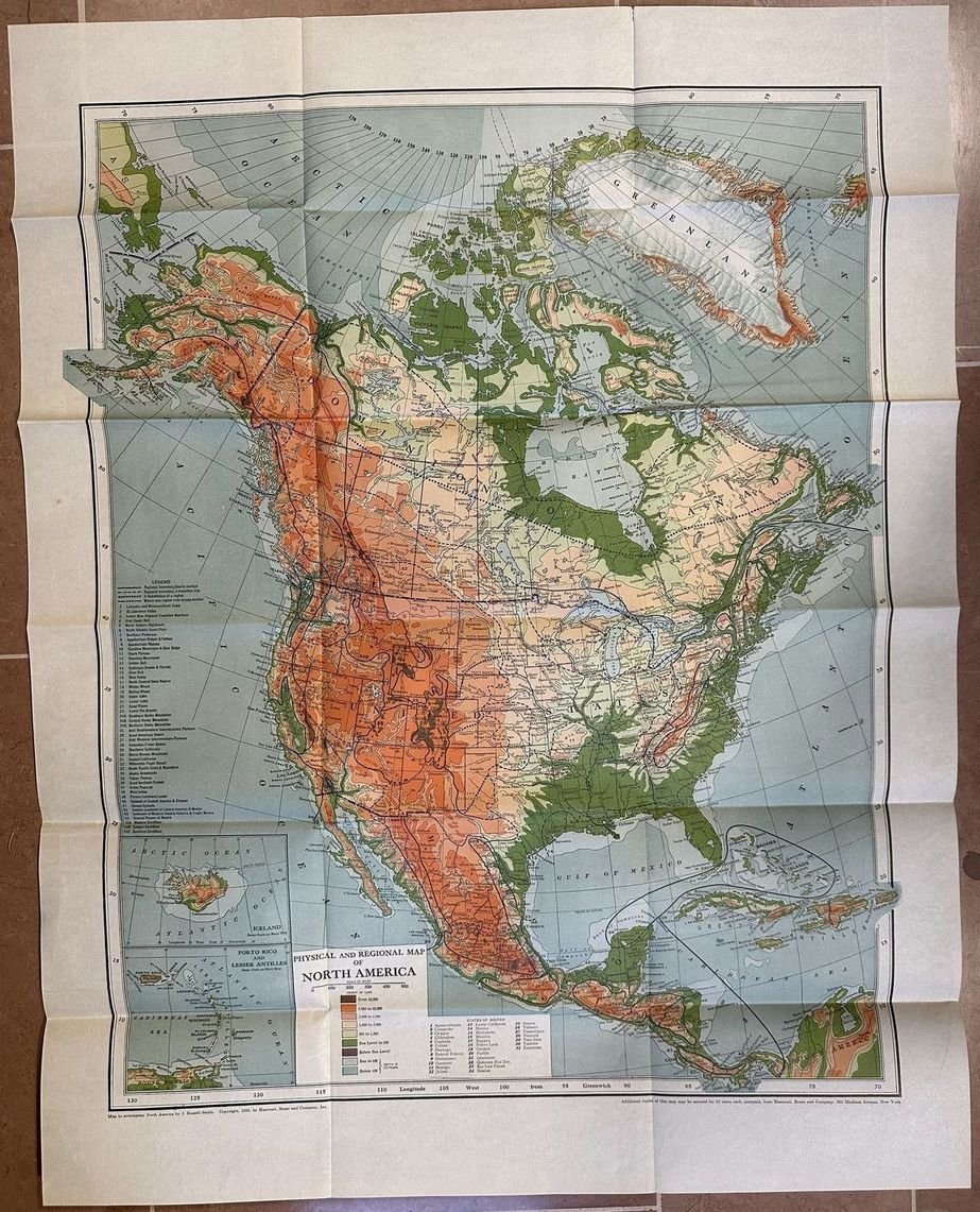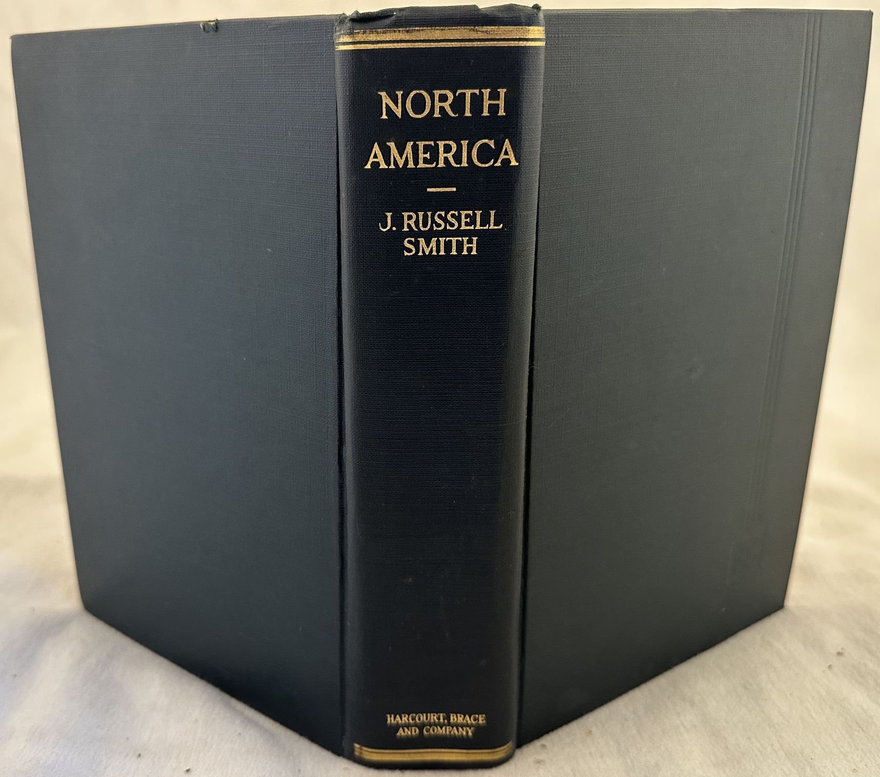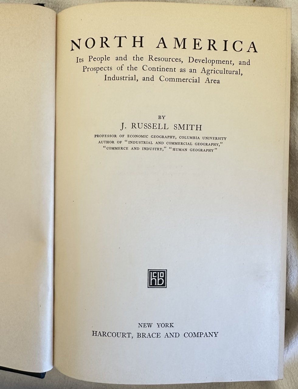 Edizione del 1925 di questa interessante opera sul Nord America di J. Russell Smith. L'autore analizza l'aspetto etnografico, economico, risorse e sviluppo, prospettive del continente dal punto di vista agricolo, industriale e commerciale. Numerose illustrazioni e foto d'epoca mostrano diverse vedute (New England, New York, Brooklyn, New Brunswick, Baltimore, Louisville, Wisconsin, Pittsburgh, Beulah, New Orleans, Duluth, Cleveland, Butte Montana, Denver, Idaho, Silver City, El Paso, Phoenix, Death Valley, Los Angeles, San Francisco, Alaska ecc. Alla fine mappa ripiegata del Nord America. In ottime condizioni. Copertina in tela editoriale in ottime condizioni con lievi usure marginali. Legatura in buone condizioni. Pagine in buone condizioni generali con fioriture. In 8. Dim. 19,5x13. Pp. VIII+849. Peso Kg. 1,500.Edition of 1925 of this interesting work about North America by J. Russell Smith. the author analyzes the ethnographyc, economical, resources and development, industrial and commercial. Different illustrations and views inside (New England, New York, Brooklyn, New Brunswick, Baltimore, Louisville, Wisconsin, Pittsburgh, Beulah, New Orleans, Duluth, Cleveland, Butte Montana, Denver, Idaho, Silver City, El Paso, Phoenix, Death Valley, Los Angeles, San Francisco, Alaska ecc. At the end folded map of North America. In very good conditions. Cloth editorial cover in very good conditions lightly worn in the extremities. Binding in good conditions. Pages in good conditions with foxing. In 8. Dim. 19,5x13. Pp. VIII+849. Peso Kg. 1,500.