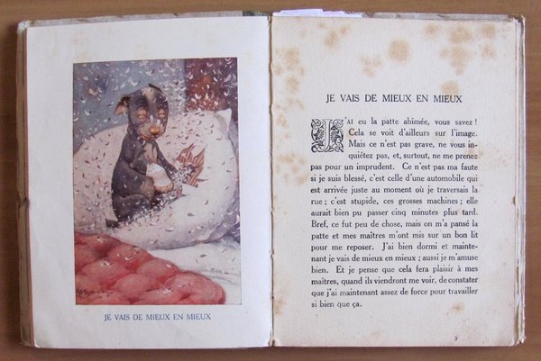 8 illustrazioni in b/n n.t. a piena pagina e 6 tavole a colori f.t. ante-retro di G. E. Studdy. Librairie Hachette - Paris, 1924. Cartonato editoriale con dorso in tela originale. Piccola ammaccatura al margine esterno della copertina e fioriture del tempo alle pagine. 13x17; pp.24 non numerate. Molto Buono ,