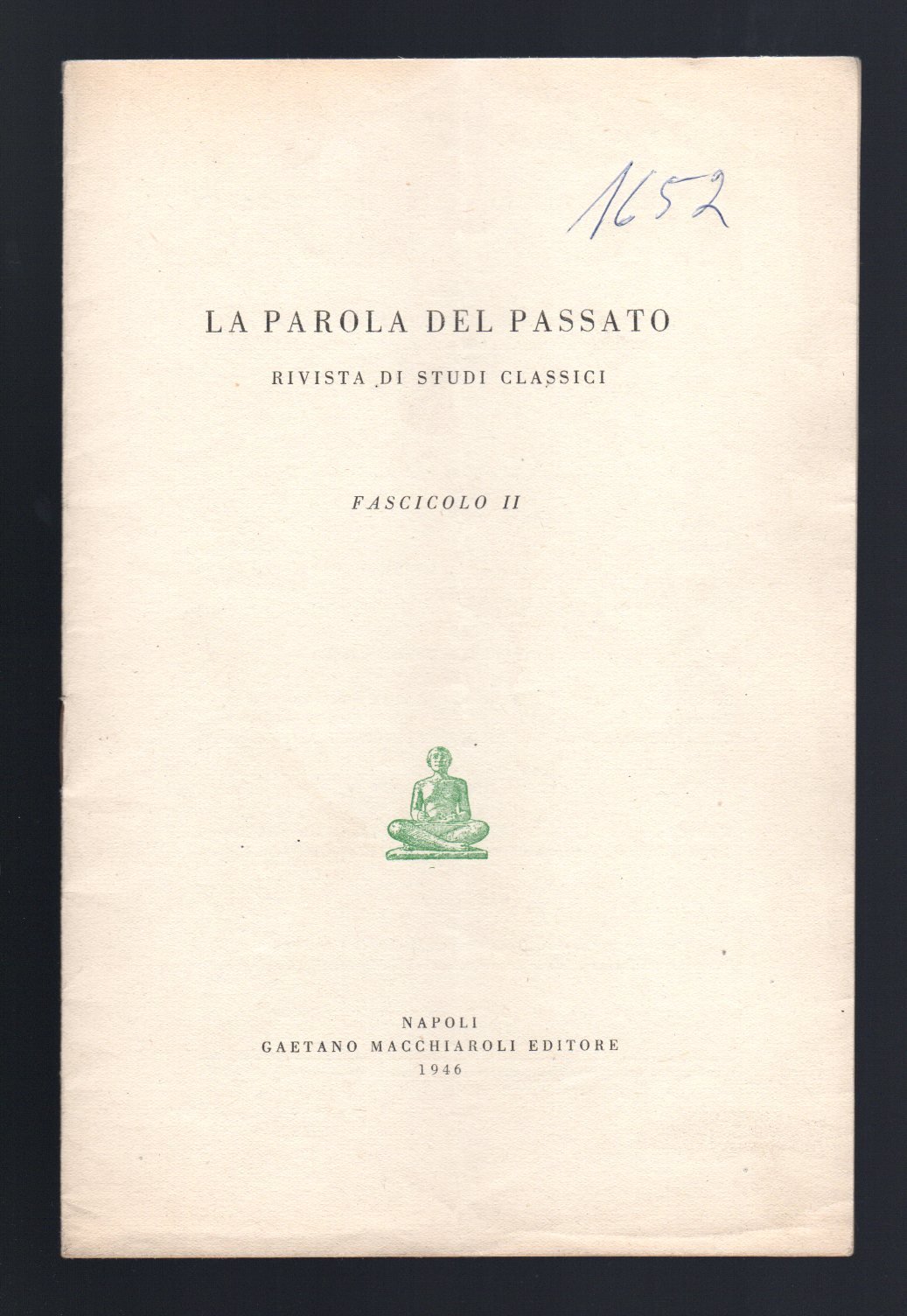 Opuscolo vintage. Rivista "La parola del passato" - Fasc. II. Dedica autografa dell'autoPiega centrale. Ordinario segno del tempo.
