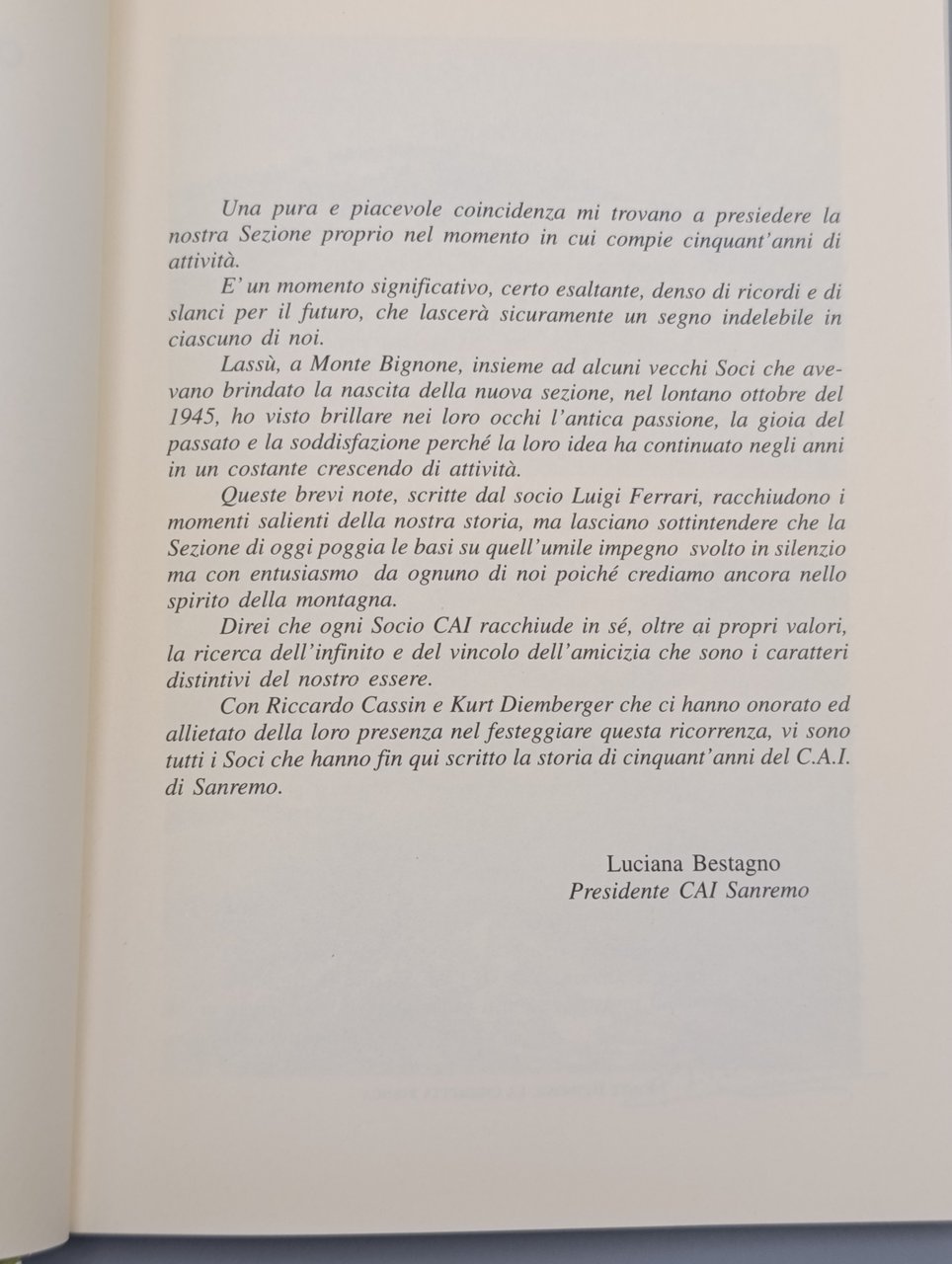 Note del Cinquantennio 1945 -1995. Storia della Sezione