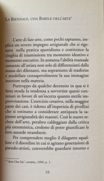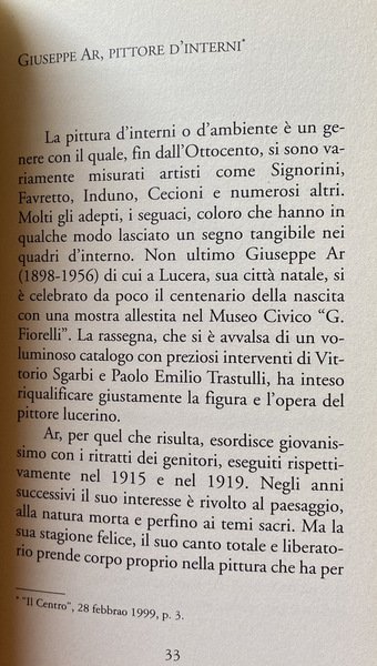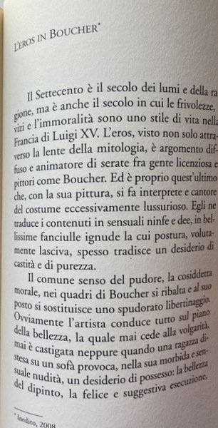 Soggetti: Critica d'arte, Pittura, Testimonianze, Artisti, Note, Pittori, Interpretazione, Scritti critici, Antologie, Analisi dell'opera, Opere generali, Giudizio, Valore, Esposizioni, Gallerie, Mostre, Biennale, Inediti, Tecniche pittoriche, Tecniche incisorie, Luce, Colori, Chiaroscuro, Recensioni, Mercato, Collezioni, Profili, Arte Contemporanea, Umberto Pozzi, Van Gogh, Jan Vermeer, Caravaggio, Martirio di San Matteo, Accademia, Nada Carbone Calcerano, Luci, Ombre, Cataloghi, Lettura, Visioni, Osservazioni, Scritti critici, Giuseppe Ar, Nicola Bellezza, Disegni, Acqueforti, Acquerelli romani, Danièle Ohnheiser, Incisioni, Santoro, Graziella Lancia, Campagna Romana, Angeli, Magdalena Sikorska, Anita Pilat, Fotografia, Seble Kidane, Lunetta Colapicchioni, Francesco Carvelli, Bronzetti, Pietro Saloni, Ettore Roesler Franz, Franco Argenti, Gabriella Cellentani, Paolo Lattanzi, Corrado Angelo, Acquerellisti, Andrea Pozzo, Luciano Santoro, Correggio, Galleria Borghese, Ladispoli, Alessandro Falcioni, Boucher, Eros, Renoir, Impressionisti, Filippo Conte, Francesco Guardi, Dipinti, Quadri, Opere grafiche, Libri Vintage Fuori catalogo, Riferimento, Consultazione, Art criticism, Painting, Testimonials, Artists, Notes, Painters, Interpretation, Critical writings, Anthologies, Analysis of the work, General works, Judgment, Value, Exhibitions, Galleries, Exhibitions, Unpublished, Painting techniques, Engraving techniques, Light, Colors, Reviews, Market, Collections, Profiles, Contemporary Art, Martyrdom of St. Matthew, Academy, Lights, Shadows, Catalogs, Reading, Visions, Observations, Critical writings, Drawings, Etchings, Roman watercolors, Engravings, Angels, Photography, Watercolor painters, Impressionists, Paintings, Paintings, Graphic works, Books Out of print, Reference, Consultation