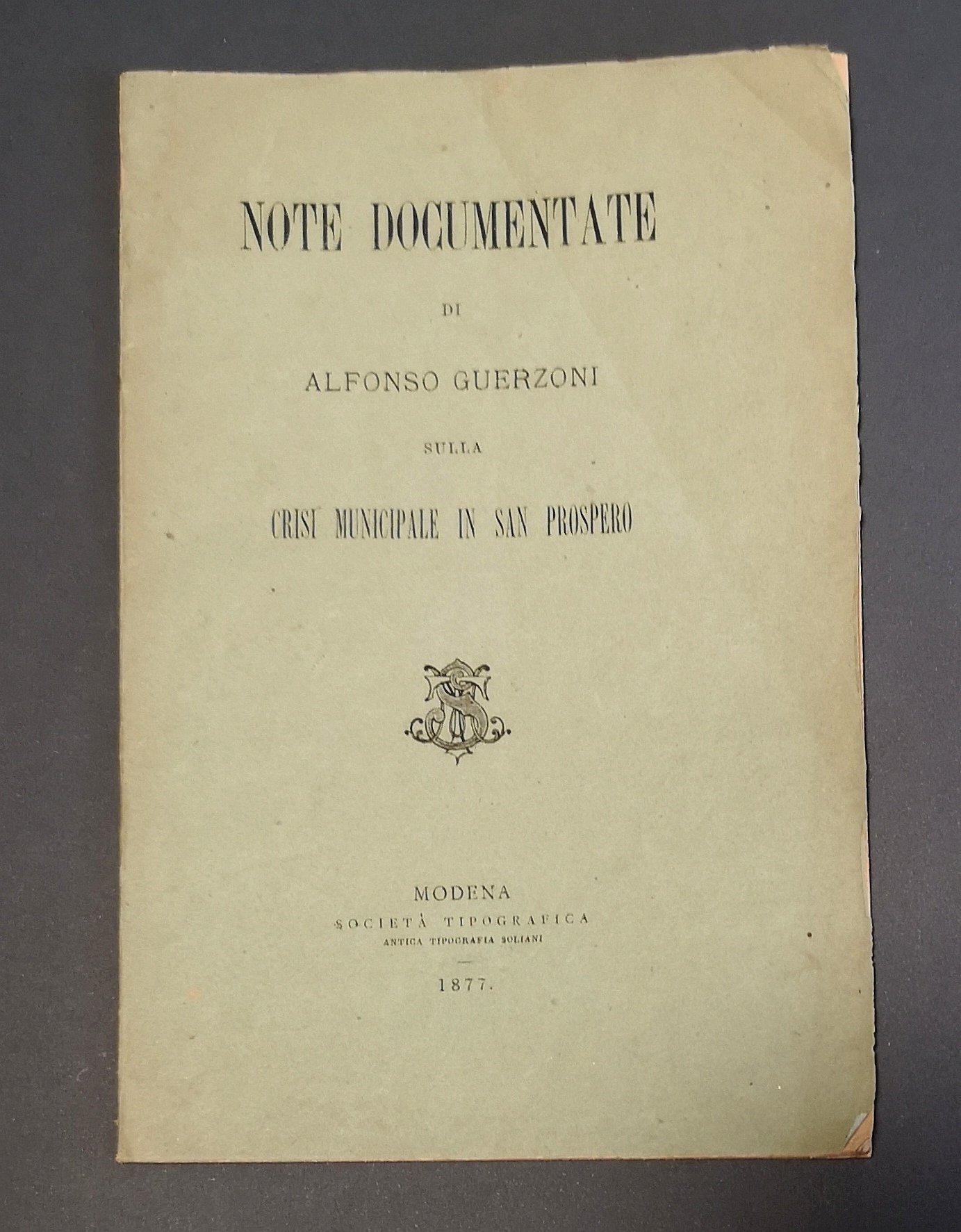 Note Documentate di Alfonso Guerzoni sulla Crisi Municipale in San Prospero.
