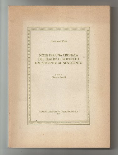NOTE PER UNA CRONACA DEL TEATRO DI ROVERETO DAL SEICENTO AL NOVECENTO