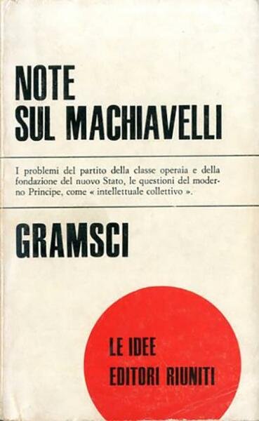 2. rist. 475 p. ; 19 x 12 cm. Le idee, 55. Agli inizi del 1932 Gramsci prese la decisione di dedicare uno dei suoi «Quaderni del carcere» a un'analisi del partito politico rivoluzionario e alla lotta per l'egemonia, partendo dalle storiche riflessioni del Machiavelli. L'autore voleva trarre dalle dottrine marxiste un sistema ordinato di politica attuale, nel solco dell'antico stratega toscano. L'argomento sarebbe stato il partito politico, nei suoi rapporti con le classi e con lo Stato: non il partito come categoria sociologica, ma il partito che ha l'ambizione di fondare lo Stato. Brossura editoriale, coperta in cartoncino flessibile a colori banco/nero e rosso. Qualche sottolineatura a penna rossa per il resto libro in buono stato. Codice libreria 7972.