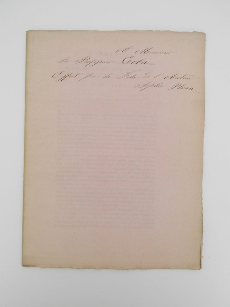 4°, pp. 4, 8, brossura cartacea rosa, esemplare in barbe a carte parzialmente intonse, bella copia offerta dalla figlia dell'autore, Sophie Plana, a Giuseppe Bartolomeo Erba. La seconda parte è un: Comuniquée à l'Académie des sciences de Turin le 17 mars 1861. 1 copia in ICCU. Per la prima parte non si registrano copie in ICCU, è stata presentata il 2 marzo 1856 all'Accademia Reale delle Scienze di Torino. *** TUTTI I NOSTRI LIBRI SONO VISIBILI PREVIO CONTATTO MAIL O TELEFONO NELLA NUOVA SEDE DI MILANO: LIBRERIA COSMOPOLIS, VIA JOMMELLI, 22. ***