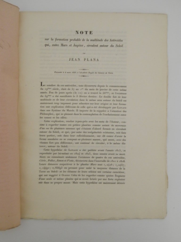 Note sur la formation probable de la multitude des Astéroides qui, entre Mars et Jupiter, circulent autour di Soleil UNITO A: Note sur la configuration originaire des anneaux dont la matière existe actuellement dans l'espace, transformée en plusieurs planètes circulantes autour du Soleil entre Mars et Jupiter