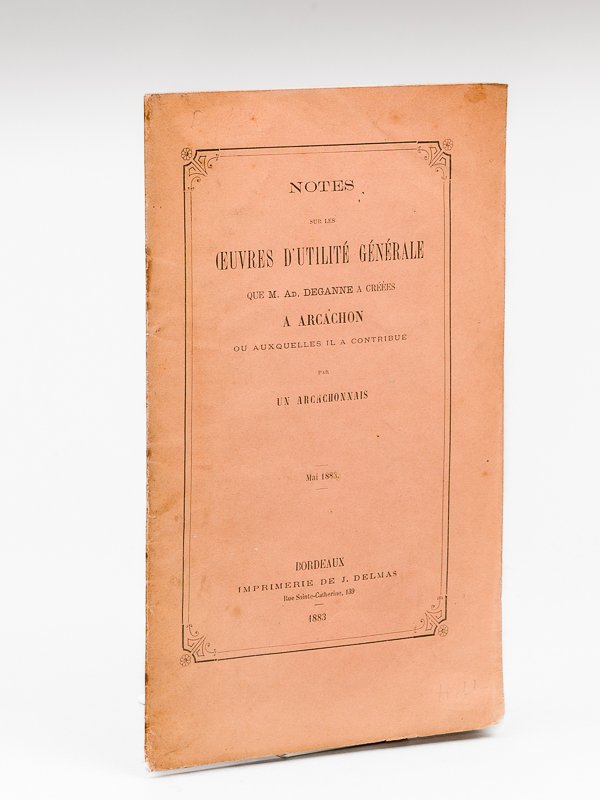 Notes sur les Oeuvres d'Utilité Générale que M. Ad. Deganne a créées à Arcachon ou auxquelles il a contribué [ Edition originale ]