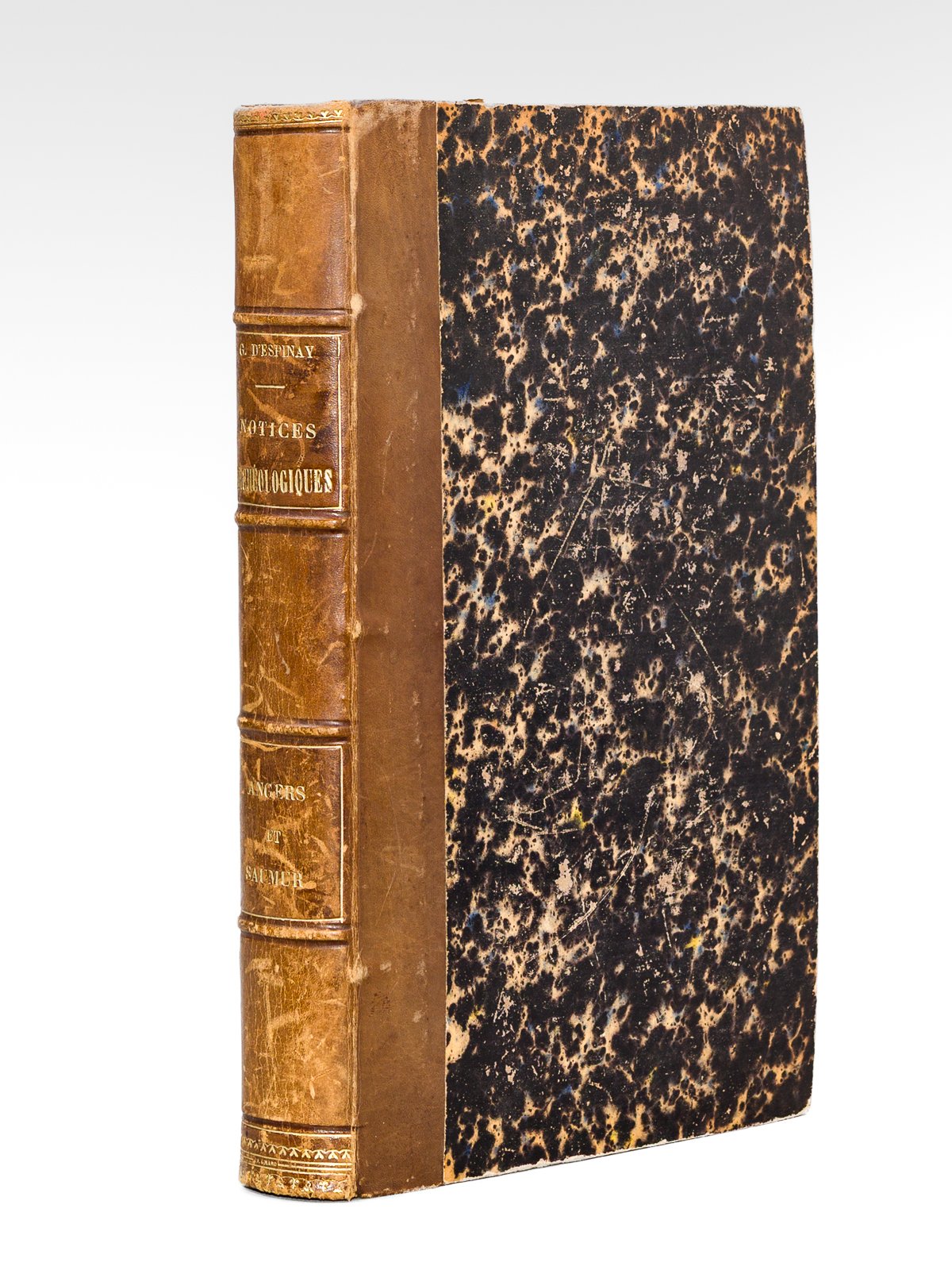 Deux séries en 1 vol. grand in-8 reliure demi-basane brune, dos à 4 nerfs, E. Barassé, Germain et G. Grassin, Angers, 1876 et 1878, VIII-299 pp. et 2 ff. n. ch. avec 14 planches lithographiées (dont 4 dépliantes) et VII-199 pp. et 2 ff. n. ch. avec 8 planches hors texte dont 7 dépliantes Chacun des deux ouvrages est dédicacé par Gustave d'Espinay à son cousin Victor Delavau. Bon état pour cette édition peu commune (dos lég. frotté, bon exemplaire par ailleurs).