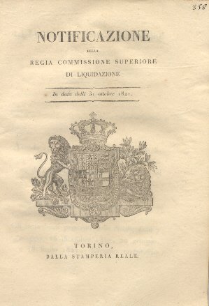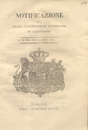 Notificazione della regia commissione superiore di liquidazione circa l'approvazione e rese definitive delle liquidazioni operate a favore de' sudditi di S. M. descritti in Elenco.31 ottobre 1821.