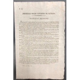 Notificazione. Imperiale Regio Governo di Venezia. Decreti per porre fine agli abusi commessi durante la navigazione del Po a danno delle finanze del Regno