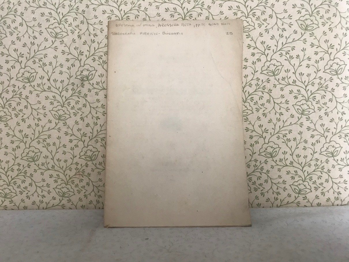 Fascicolo in 8, brossura muta, legata in due soli punti da un nastro di seta nero (che non ha resistito al tempo se non nella parte centrale), frontespizio, 12 pp. Discorso commemorativo, stampato prima sul 'Monitore Toscano' e tirato poi a parte in sole venti copie (rif. La Bibiografia di Pietro Fanfani 1874, pag. 43). Interessante soprattutto per lo spaccato di storiografia fiorentina che offre. Ovviamente raro, ed in bello stato.