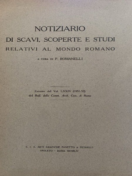 NOTIZIARIO DI SCAVI SCOPERTE E STUDI RELATIVI AL MONDO ROMANO A CURA DI P.ROMANELLI ARTI GRAFICHE PANETTO PETRELLI SPOLETO 1954