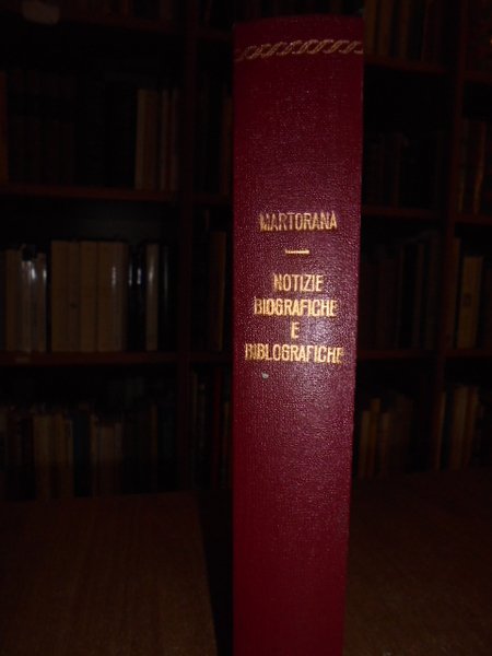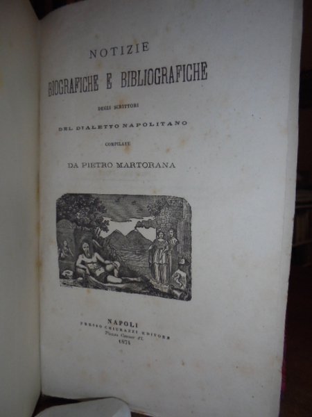 Martorana, Pietro. Napoli, Chiurazzi, 1874. Notizie biografiche e bibliografiche degli scrittori del dialetto napolitano. In - 8° grande, m. tela. xxiii, 464 pp. Bell' esemplare intonso con testimoni di questa rara biobibliografia dialettale. Neg. Mob. 4.