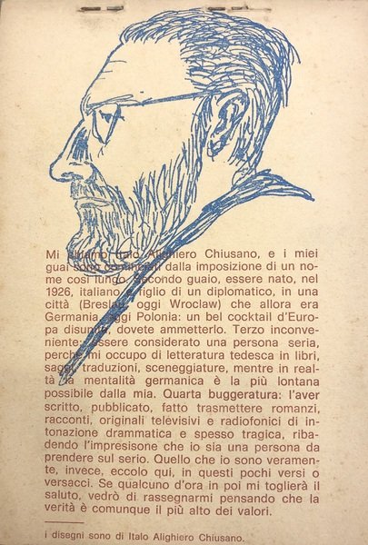 Collana Il Blocchetto, n.3. Periodico di satira letteraria e artistica. Disegni di Italo Alighiero Chiusano. Copertina flessibile, pagine senza numerazione