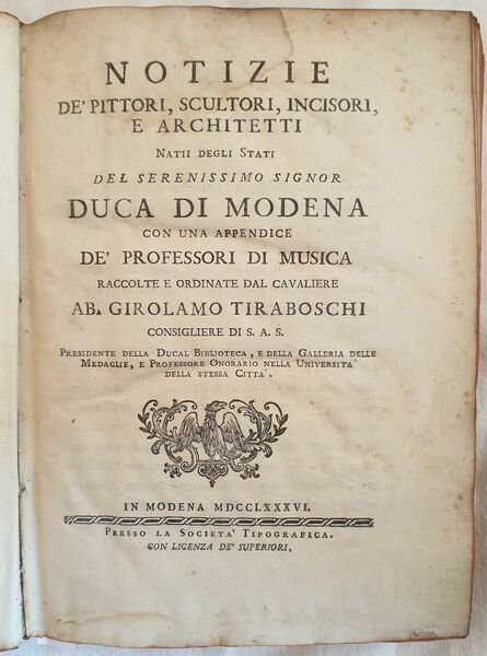 NOTIZIE DE PITTORI SCULTORI INCISORI E ARCHITETTI NATII DEGLI STATI DEL SERENISSIMO SIGNOR DUCA DI MODENA