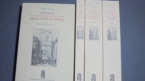 NAPOLI, ANTICAGLIA, 2001. Fedele ristampa anastatica, anche nel formato (cm. 21/13,7) della rara edizione del 1856-60. Vol. 5 in 8 tomi. Racchiusa in elegante cofanetto in tela. Tiratura limitata di mille copie numerate. I. Volume: Notizie generali della citt di Napoli. Introduzione di Paolo Macry. pp. XVI-384. II Volume: (due tomi) Giornata prima. pp. complessive 860. III. Volume: (due tomi) Giornata seconda e terza. pp. complessive 956. IV. Volume: Giornata quarta e quinta. pp. 644. V. Volume: (due tomi) Giornata sesta, settima, ottava, nona e decima. pp. complessive 1062.