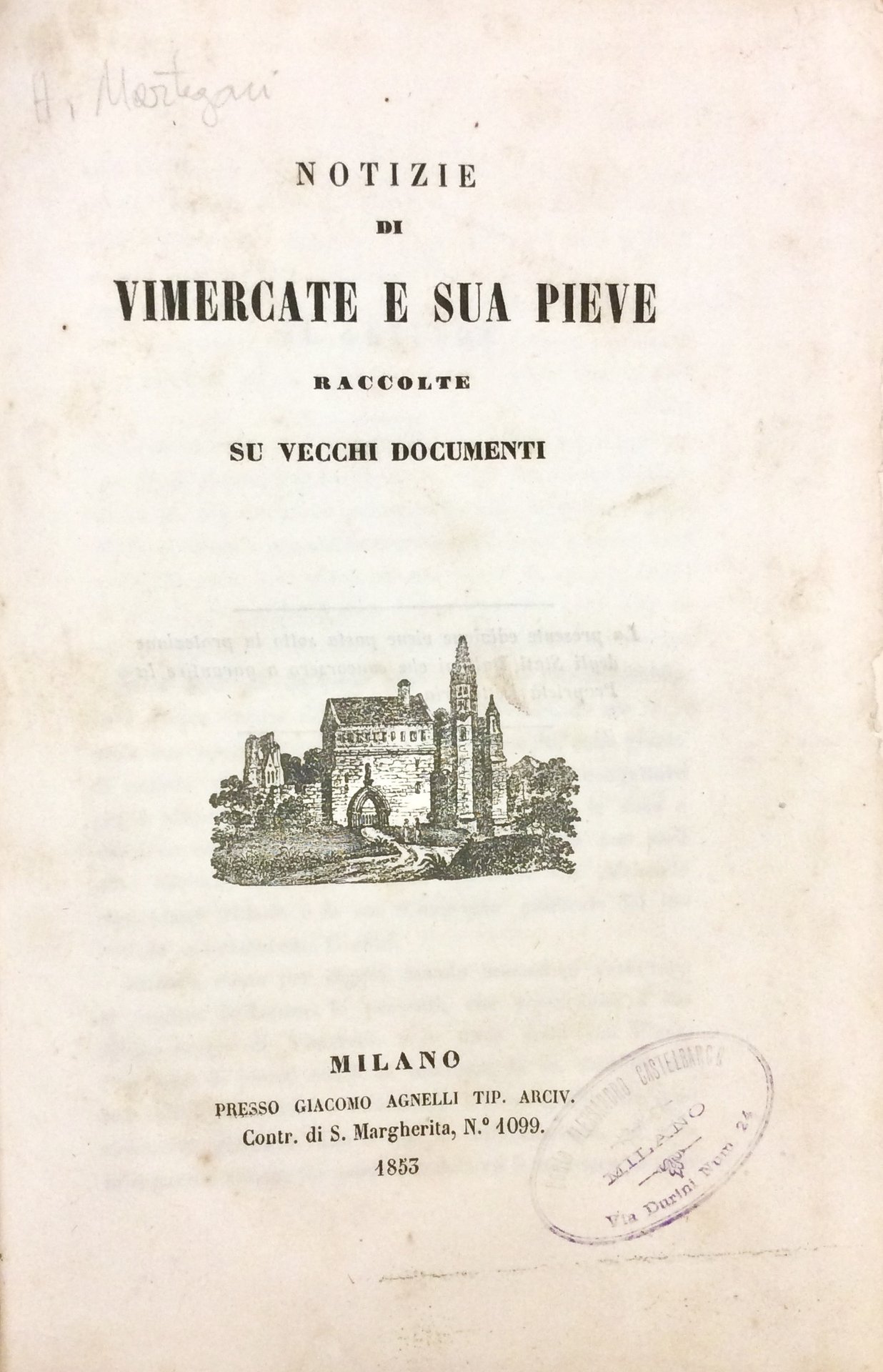 NOTIZIE DI VIMERCATE E SUA PIEVE. - Raccolte su vecchi documenti.
