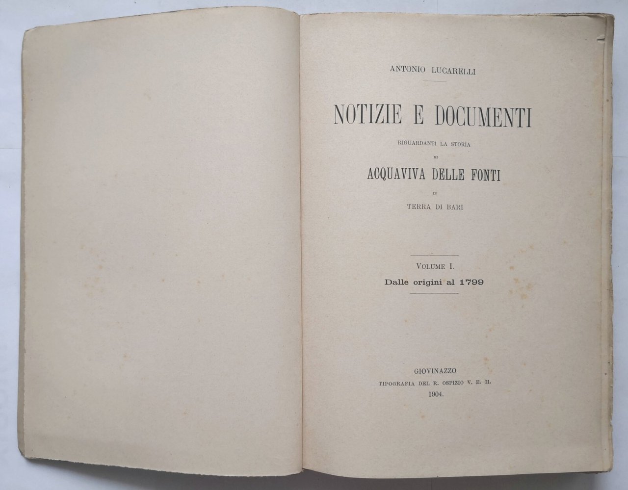 NOTIZIE E DOCUMENTI RIGUARDANTI LA STORIA DI ACQUAVIVA DELLE FONTI volume I 1904