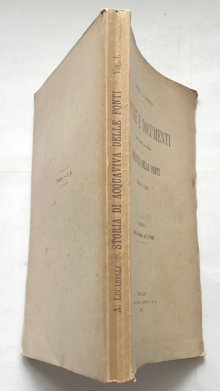 NOTIZIE E DOCUMENTI RIGUARDANTI LA STORIA DI ACQUAVIVA DELLE FONTI in terra di Bari di Antonio Lucarelli. Volume I - Dalle origini al 1799.