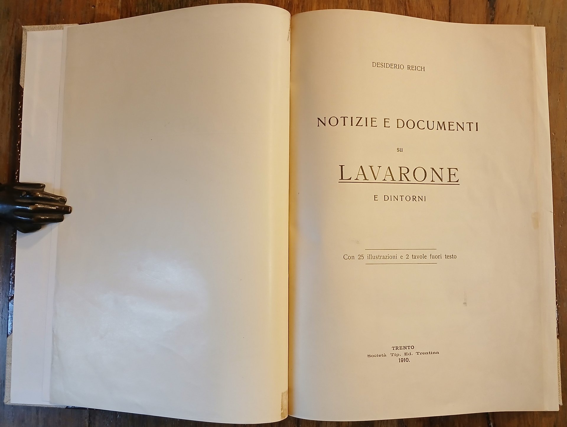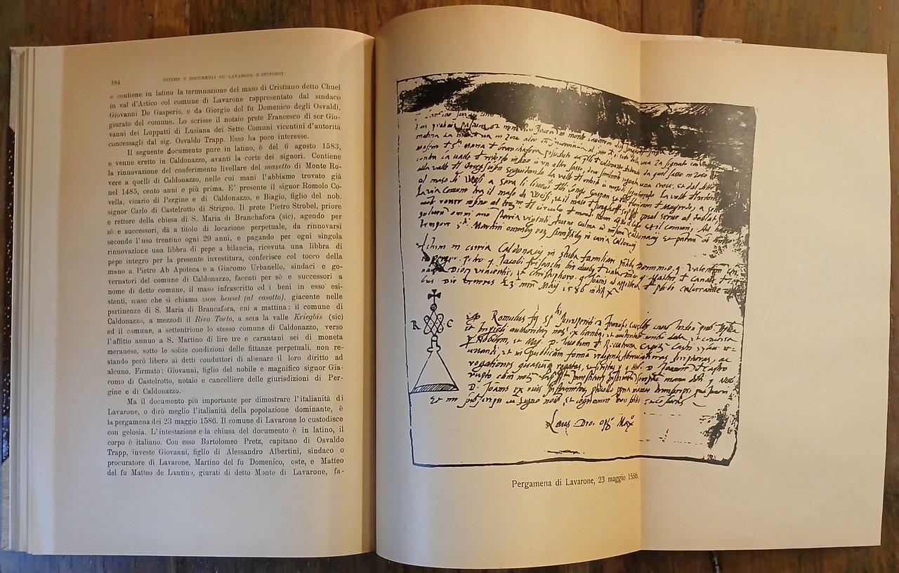 (Storia locale - Trentino - Altipiani cimbri) In 8°, legatura in mezza tela canapa con punte, al dorso tassello in pelle amaranto con titoli dorati, carta decorata ai piatti, conservate le copertine della brossura editoriale, pp. (4),VIII,(4),254, con due tavole ripiegate e 25 illustrazioni in bianco e nero nel testo. Alcuni restauri alla brossura, peraltro volume in ottimo stato di conservazione. Edizione originale.