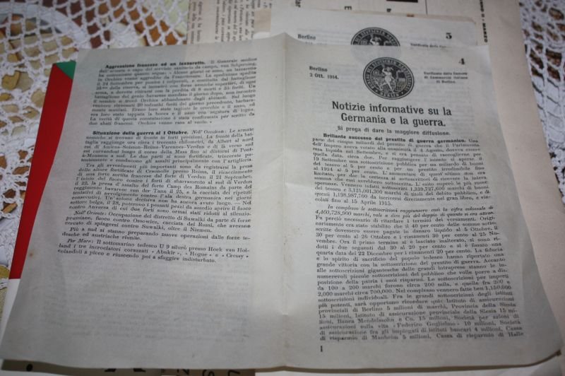 COD 4673, , NOTIZIE INFORMATIVE SU LA GERMANIA E LA GUERRA BERLINO 2 OTT 1914 N. 4