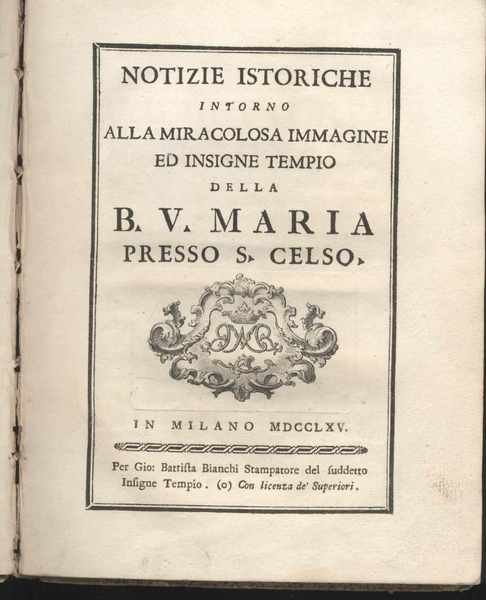 Notizie istoriche intorno alla miracolosa immagine ed insigne tempio della B. V. Maria presso S. Celso