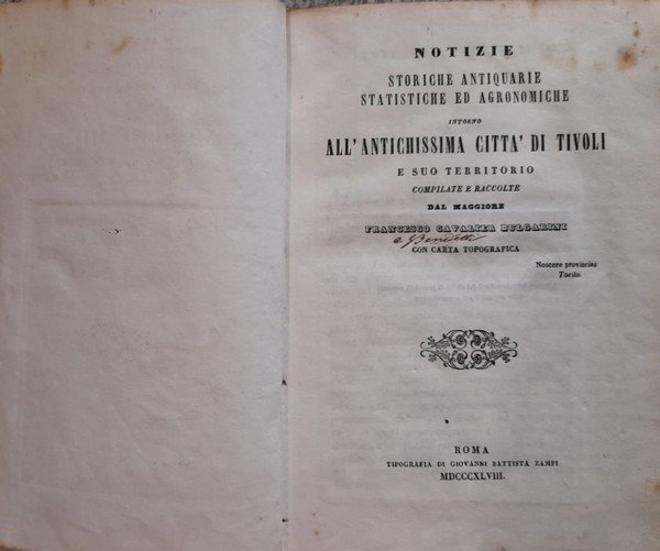 Notizie storiche antiquarie statistiche ed agronomiche intorno all'antichissima città i Tivoli