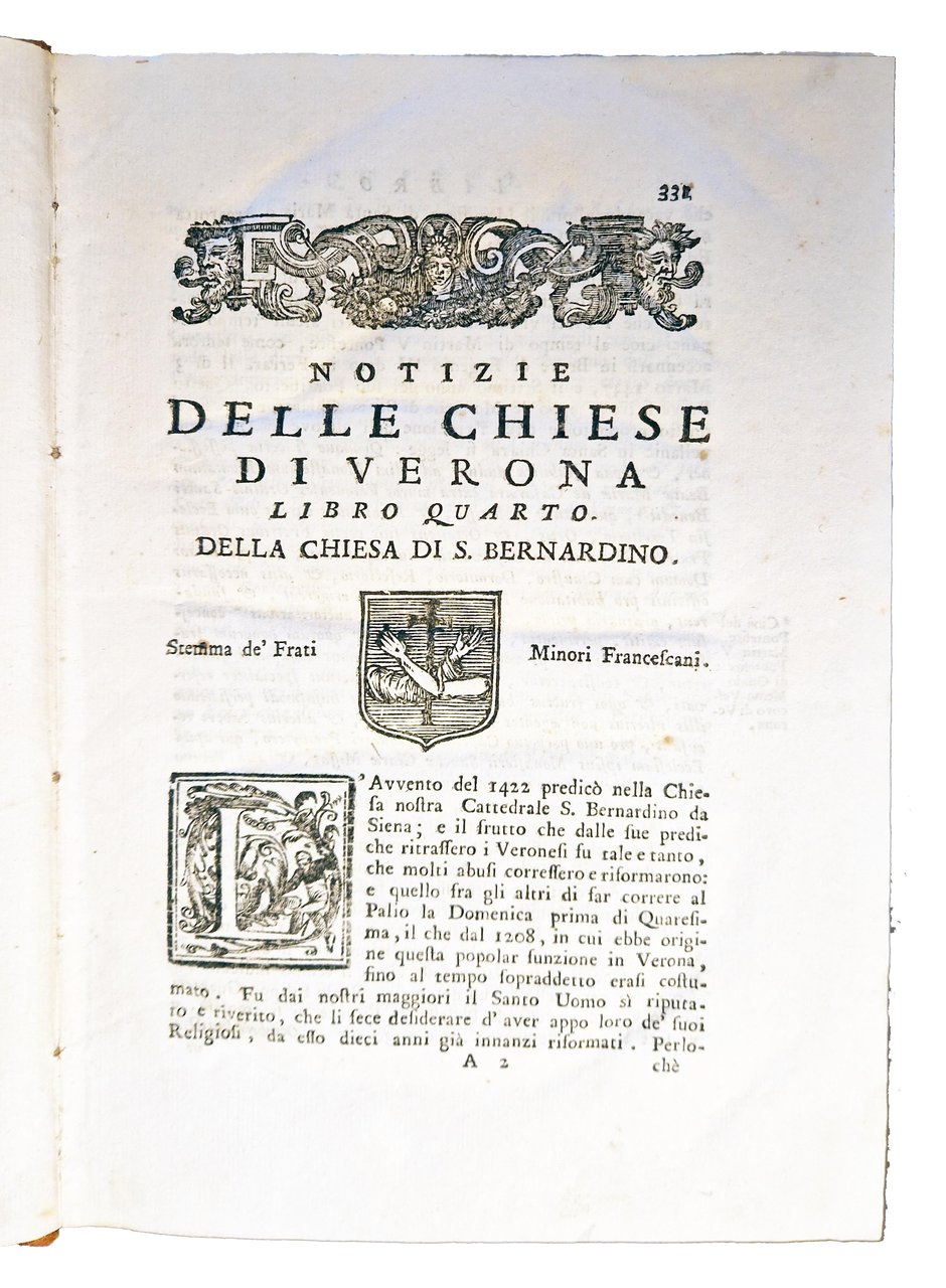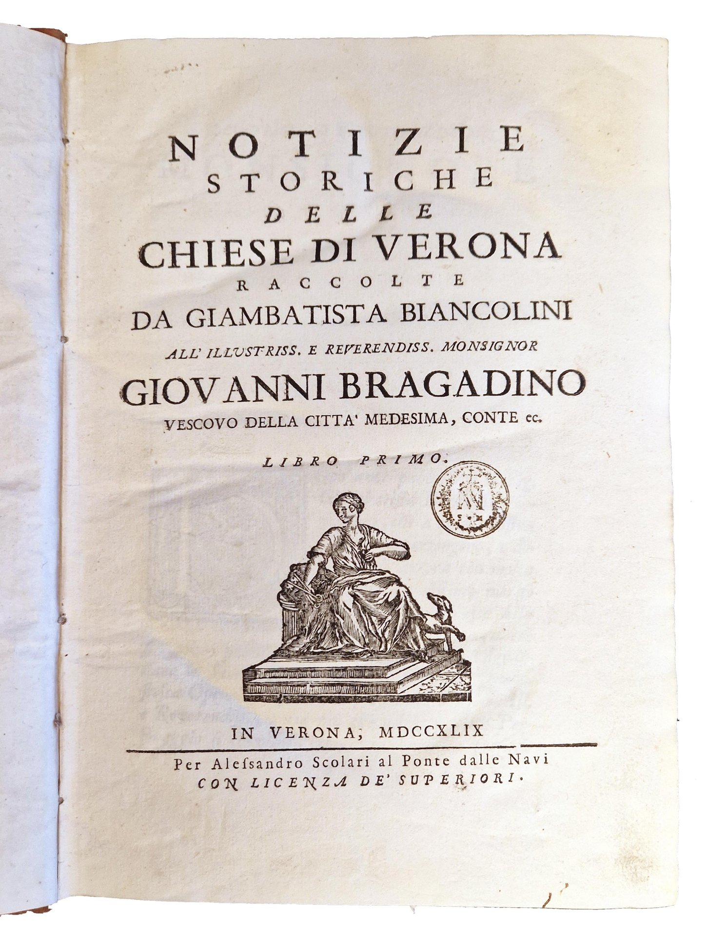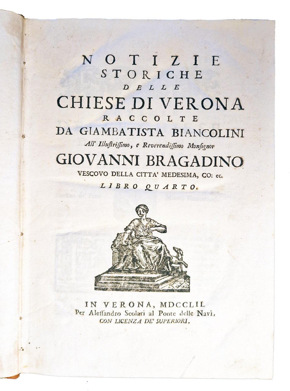 Notizie storiche delle chiese di Verona raccolte da Giambatista Biancolini all'illustriss. e reverendiss. monsignor Giovanni Bragadino Vescovo della citta medesima, conte ec. Libro primo [-quarto].