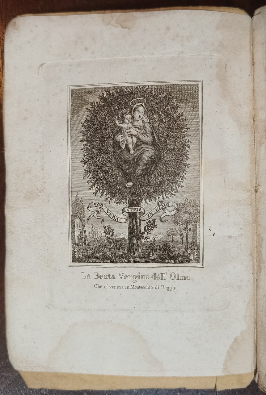 Cm 15,8. Brossura color senape. Pp. 112. Antiporta con immagine della Beata Vergine dell'Olmo. Qualche gora al margine inferiore e minima mancanza al dorso. Le notizie storiche terminano al 1848 con la soppressione dell'ordine, a pagina 48 l'autore fa cenno a un decreto del marzo 1850 con il quale viene ristabilita la Congregazione del SS. Redentore e con essa la pubblicazione dell'opuscolo. Nel testo, dopo i cenni storici, si trovano: introduzione alla Novena, Canzoncina e Coronella.