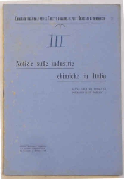 Notizie sulle industrie chimiche in Italia. Principali composti di sodio di potassio e di calcio e relativi sottoprodotti. - Altri sali di sodio potassio e calcio.