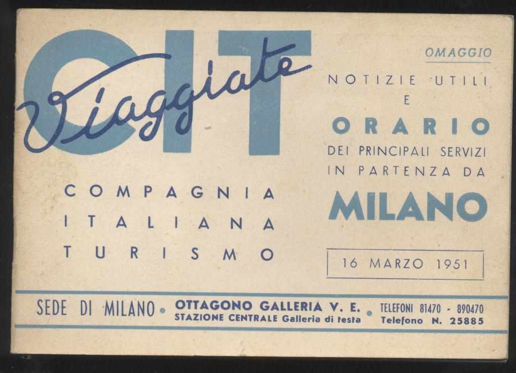 Notizie utili e orario dei principali servizi in partenza da Milano - 16 marzo 1951