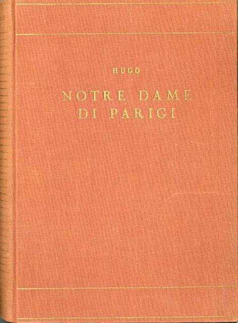 495 p. ; 20 x 14 cm. Edizioni Belforte. L'arcidiacono di Notre-Dame, Claude Frollo, si innamora della celebre danzatrice zingara Esmeralda. Incarica perciò il grottesco campanaro della cattedrale, il gobbo Quasimodo, di rapirla. Ma il capitano Phoebus de Chateaupers la trae in salvo e conquista il suo amore. Frollo uccide Phoebus facendo ricadere su Esmeralda la colpa del delitto. Quasimodo intanto, commosso da un atto di gentilezza di lei, diventa quasi un suo schiavo e la conduce a Notre-Dame per proteggerla. Dopo una serie di peripezie, Esmeralda verrà catturata e fatta impiccare sotto gli occhi di Frollo, che osserva impassibile l'esecuzione. Quasimodo, disperato, ucciderà Frollo e poi, con il cadavere della donna tra le braccia, si lascerà morire a sua volta. Titolo originale dell'opera: "Notre-Dame de Paris". Traduzione di Luigi Pescetti. Legatura editoriale, coperta in cartone rigido telato colorato con impresso il titolo in oro al piatto e al dorso. Codice libreria 4710.