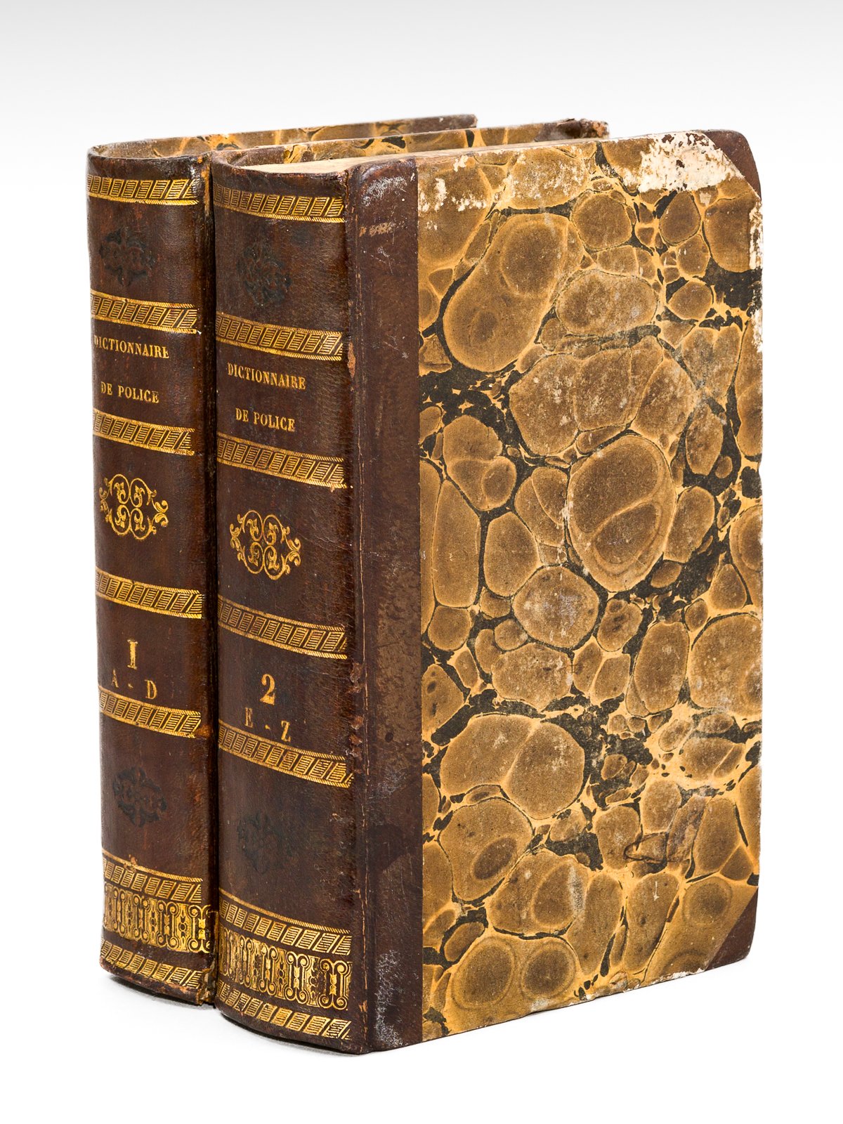 2 vol. in-8 reliure de l'époque demi-veau vert, toutes tranches marbrées, Béchet Jeune, Paris, 1835, CXXXII-694 pp. ; 2 ff., 921 pp. Rappel du titre complet : Nouveau Dictionnaire de Police ou Recueil analytique et raisonné des lois, ordonnances, règlements et instructions concernant la Police judiciaire et administrative en France (2 Tomes - Complet). Précédé d'une introduction historique sur la Police depuis son Origine jusqu'à nos Jours. Bon état (coins et plats lég. frottés)