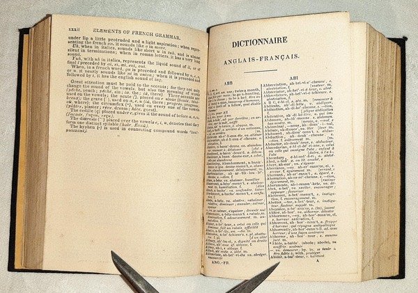 in-12°, 116x78 mm, leg. editoriale in tela nera con impressioni e titolo dorato al dorso; pp. XV, 320; XXXII, 488, (2). Opera comprendente la parte Inglese-Francese e quella Francese-Inglese. Rif.: IT\ICCU\TO0\1708950. Cond.: Esemplare in condizioni quasi ottime.