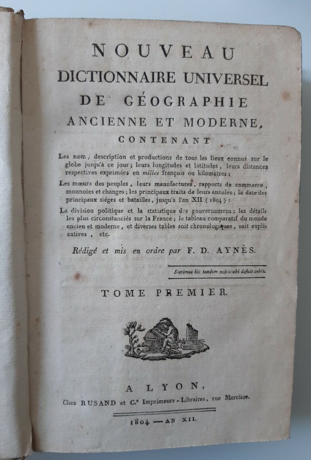 NOUVEAU DICTIONNAIRE UNIVERSEL DE GEOGRAPHIE ANCIENNE ET MODERNE ... REDIGE PAR F.D. AYNES