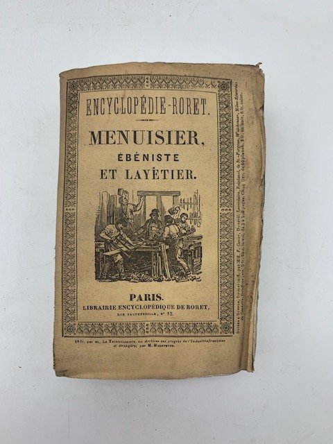 In 16 (cm 9,5 x 15), pp. (2) + 478 con 1 tavola illustrata all'antiporta. Fioriture sparse alle pagine. Brossura editoriale. SOLO IL PRIMO TOMO di questo Manuale Roret dedicato alla falegnameria e all'ebanisteria.