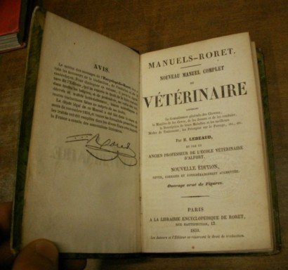 Volume in 12 legato in mezza pelle, titolo al dorso decorato, sguardie, occhiello, frontespizio, 308 pp., le 7 tavole incise al tratto riunite in due carte pi volte ripiegate al fondo del volume. L'eccellente compendio di veterinaria edito dalla famosissima Imprimerie qui presentato in ottimo stato. Non comune.