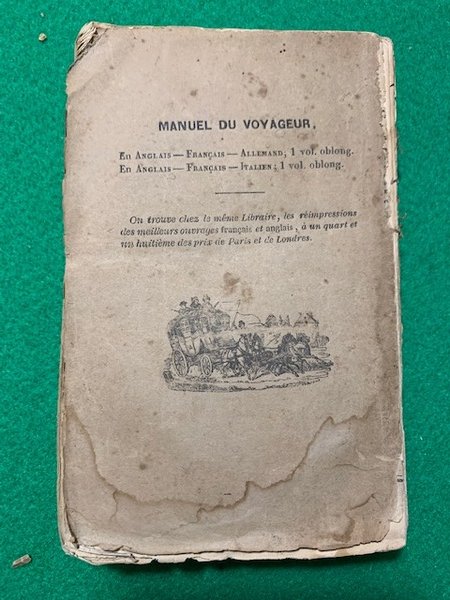 In 8° piccolo; (4), 355, (1) pp. Brossura editoriale, difetti e mancanze al dorso, in parte mancante. Esemplare lento. Al piatto posteriore immagine di una diligenza. Seconda edizione, dopo la prima del 1821, di questa non comune guida per il viaggiatore con esempi di conversazione in diverse lingue, i cambi monete e i pesi e le misure di diversi paesi e principati europei. Numerosi sono dedicati ai diversi stati italiani. Rif. Bibl.: IT\ICCU\BA1\0021208.
