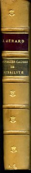 In-16°, pp. (8), 448, legatura del tempo m. pelle bionda con dorso a nervetti adorno di fiorellini in oro e di titolo in oro su doppio tassello bicromo, uno in pelle rossa e uno in pelle verde. Piatti marmorizzati, tagli e risguardi decorati a piuma di pavone. Numerosissime illustrazioni in b.n. n.t. di gusto umoristico-caricaturale di José Roy. 6 pp. di facsimile di autografo in fine. Ex-libris. Ottimo stato. Edizione definitiva di questo fortunato studio su cause e rimedi della sterilità maschile e femminile e sulle tecniche di fecondazione artificiale.