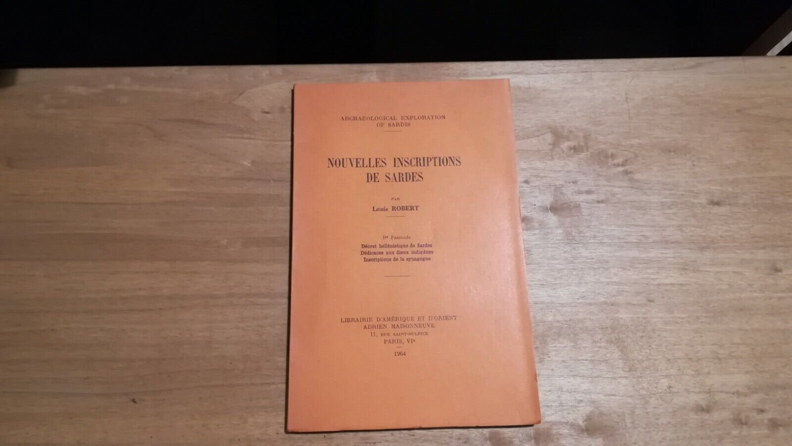 Louis Robert - Nouvelles inscriptions de sardes Librairie d'Amйrique et d'Orient Adrien Maisonneuve Prima edizione 1964 Libro in ottime condizioni, minimi segni del tempo. Non esitate a contattarci per altre foto o richieste. Saremo lieti di soddisfare ogni vostra esigenza.