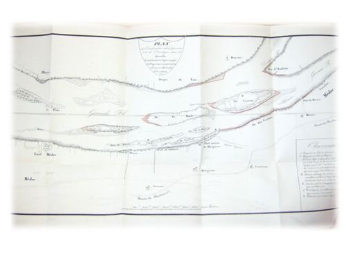 Nouvelles Recherches sur les Encombrements toujours croissants de la Garonne inférieure et de la Gironde, particulièrement relatives à la portion de leur lit qui longe les côtes du Médoc ; adressées le 24 août 1840, à M. le Préfet de la Gironde, qui les a transmises à M. le Ministre des Travaux Publics ; suivies d'une deuxième édition des Recherches sur la cause de ces Encombrements, imprimées en 1824, qui donnèrent lieu à l'importante décision prise en 1825 par le conseil général des ponts et chaussées, et précédées de deux plans topographiques et d'un sommaire. ; Avec 2 cartes dépliantes rehaussées à l'encre, 1 vol. in-8 relié d'époque demi-chagrin bordeaux, Imprimerie et Lithographie de Henry Faye, Bordeaux, 1840, 139 pp. Bel exemplaire (dos très lég. frotté, parfait état par ailleurs). Rare