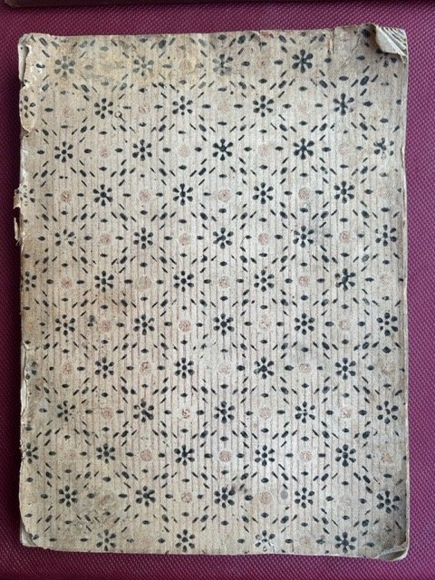 In-4°, pp. XV, (1), 150, (1 bianca), frontespzio entro cornice xilografica, brossura dell'epoca in bella carta decorata a mano, dorso mancanzte. Buona copia fresca e ad ampi margini.