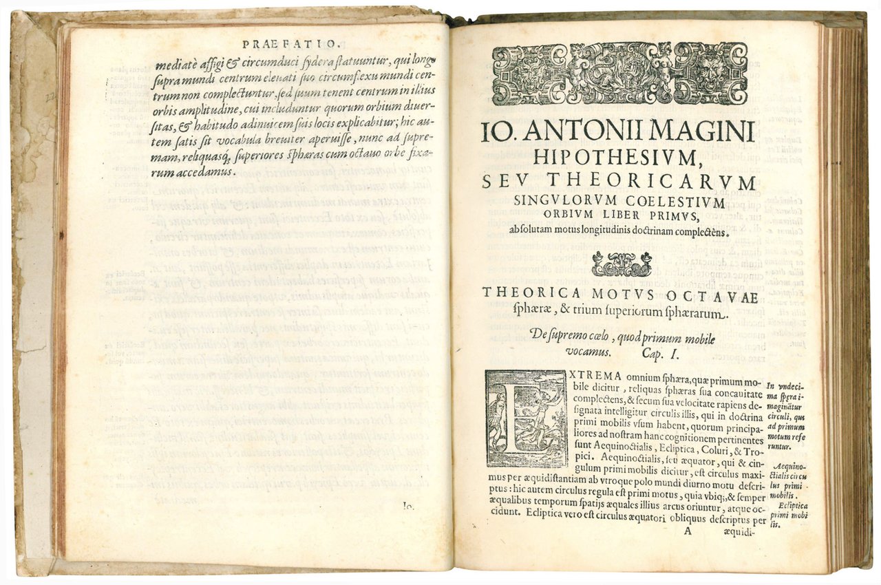 forth the theory of the moon according to Copernicus and 27 pages to present his own, which employs eccentrics only without epicycles. The work of Magini is profusely illustrated with figu