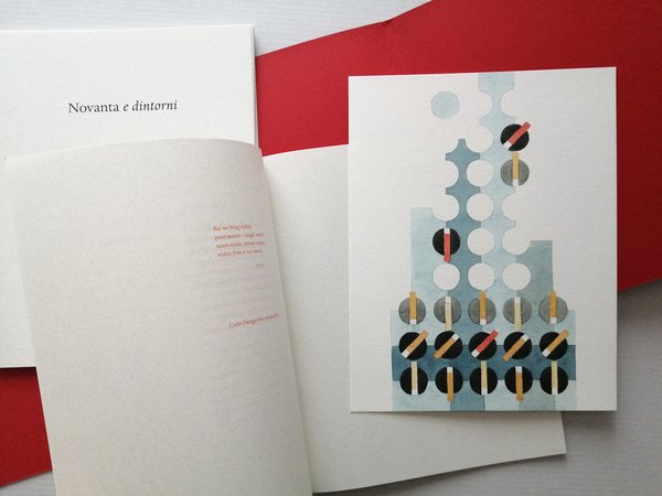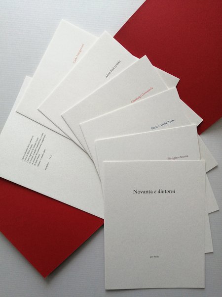 formato 23X18. Cartellina contenente 7 quartini con le incisioni firmate a colori delle opere di KENGIRO AZUMA - ENRICO DELLA TORRE - GIANLUIGI GIOVANOLA - ALINA KALCZYNSKA - CARLO NANGERONI. Edito per il novantesimo compleanno di Paolo Franci. Stampato da Lucini in 300 esemplari. Perfetto