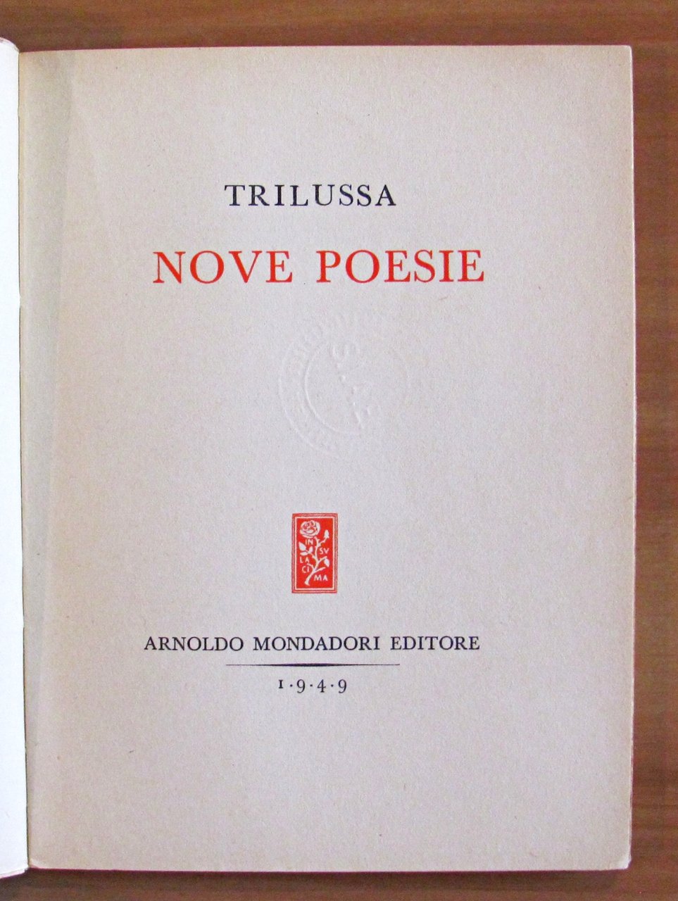 Collana Tutte le opere di Trilussa. Ed. Arnoldo Monddori - Milano, 1949. Brossura editoriale con lievi fioriture del tempo alle sole copertine. 16x21; pp.86. OTTIMO STATO , Ottimo (Fine)