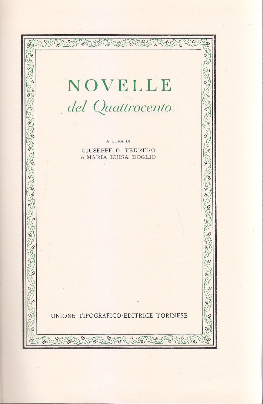 NOVELLE DEL QUATTROCENTO a cura di Giuseppe Ferrero e Maria Doglio 1975 libro